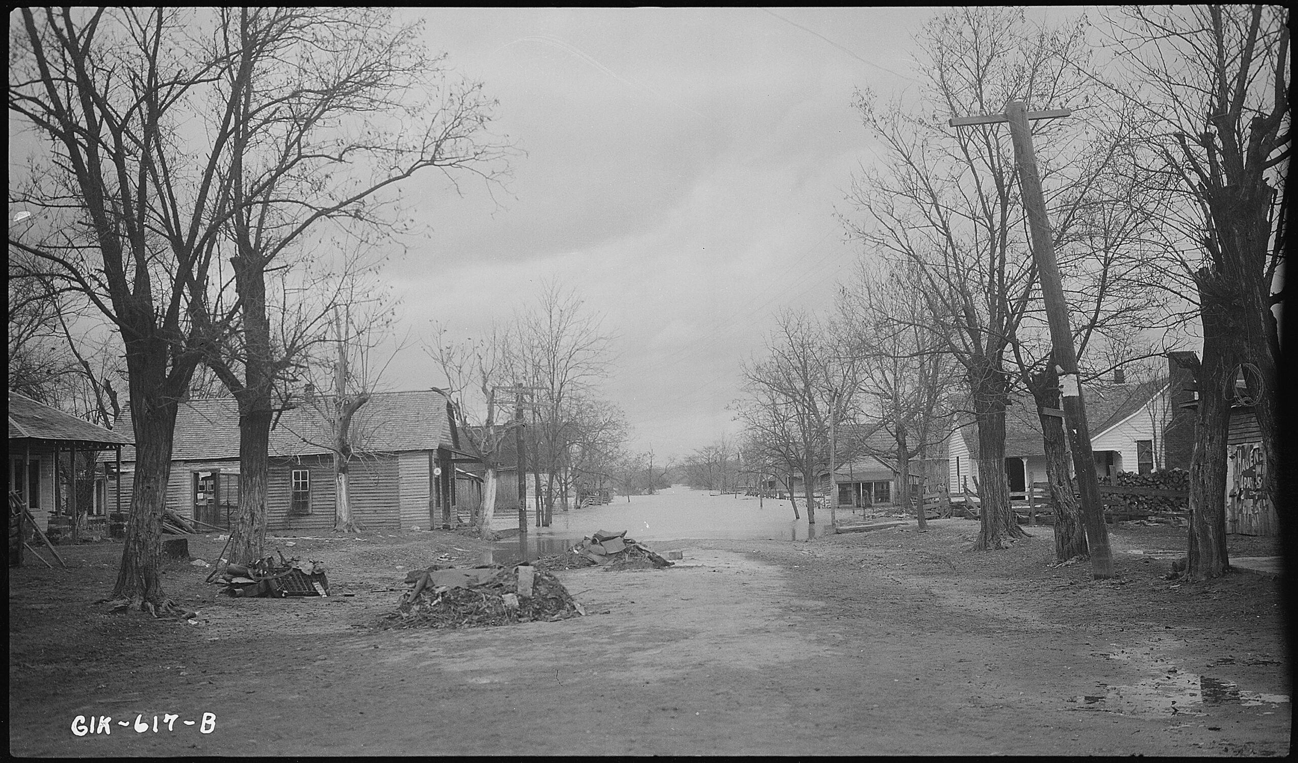 Image: Flooded Homes in Birmingham, Kentucky in 1937 via Wikimedia Commons, public domain
