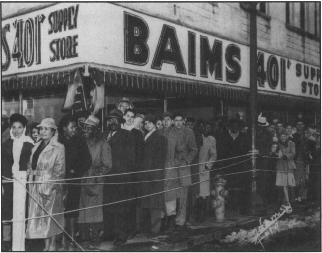 Pine Bluff, Arkansas, January 21, 1948 — Black and White Americans stand together in a single line to see the Freedom Train, a national exhibition carrying the Declaration of Independence, the Bill of Rights, and the Emancipation Proclamation.