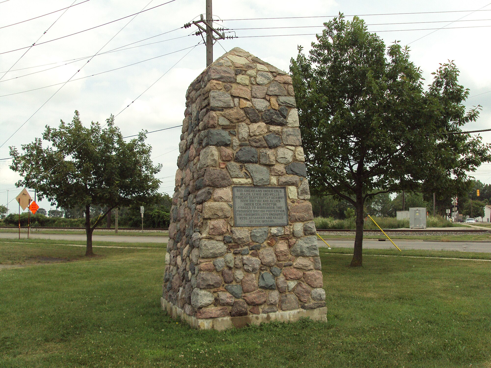Image of the obelisk commemorating the Battle of Frenchtown via Wikimedia Commons, public domain