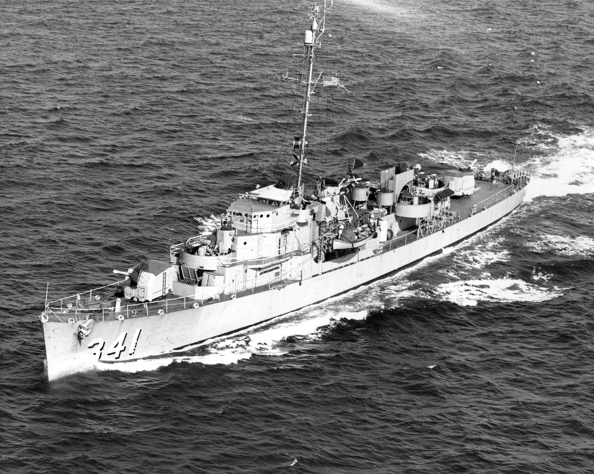 Image of the USS Raymond in 1956 via Wikimedia Commons, public domain