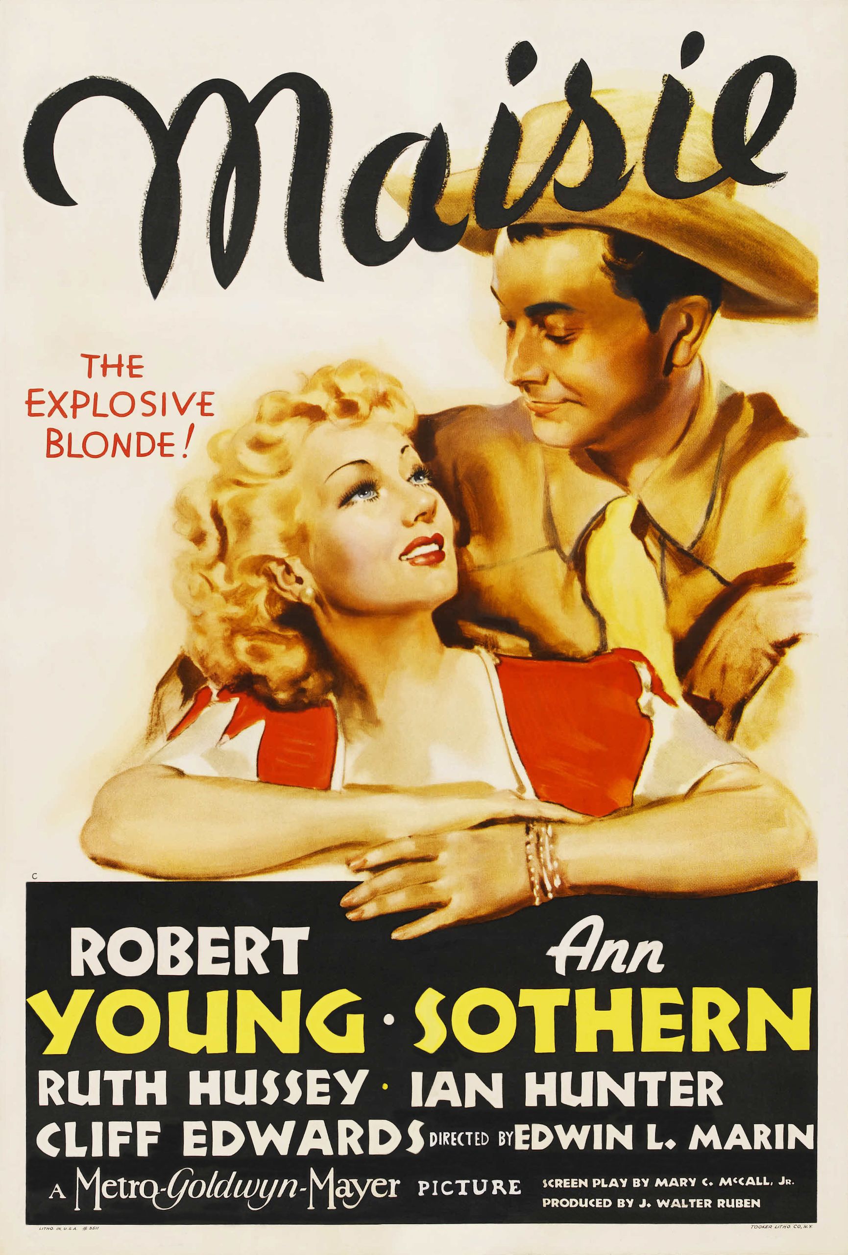 A movie poster for the 1939 film “Maisie” starring Ann Sothern and Robert Young.