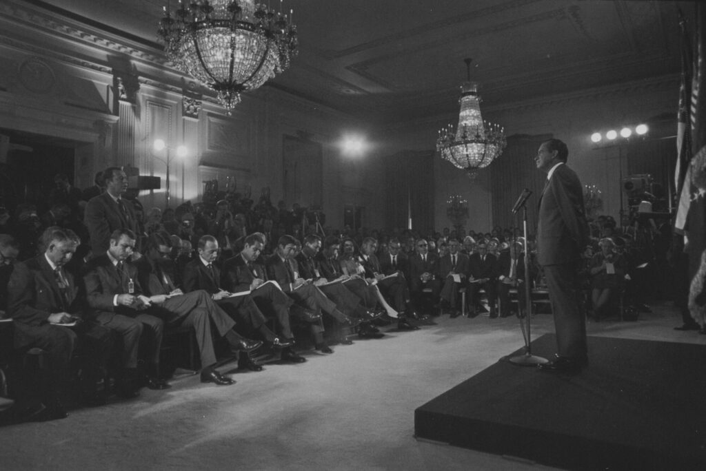 At his first presidential news conference, carried live on radio and television, Richard Nixon fielded questions on Vietnam, the non‑proliferation treaty, and the prospects for strategic arms control with the Soviet Union. He signaled that any future arms talks would unfold within the broader landscape of political issues facing both powers, from Europe to the Middle East. Members of the White House press corps filled the East Room as Nixon outlined the cautious foreign‑policy posture that would shape his early months in office.