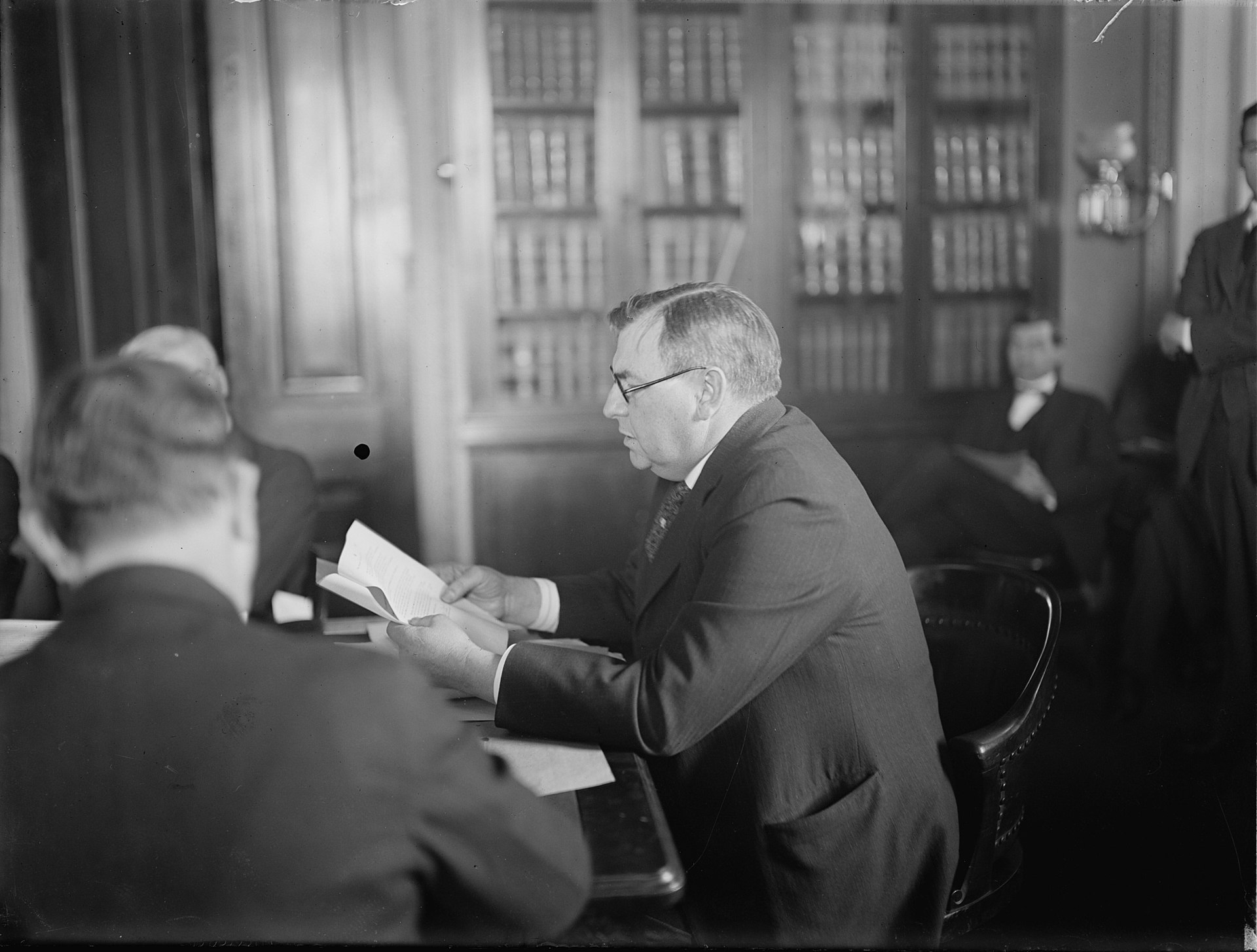U.S. Attorney General Harlan F. Stone testifying before the Senate Judiciary Committee during his Supreme Court confirmation process on January 28, 1925.