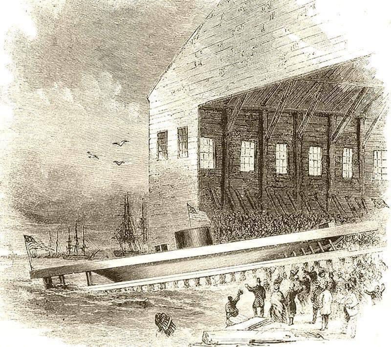 Photo: Launch of the USS Monitor line engraving published in Harper’s Weekly 1862 (U.S. Naval Historical Center) [Public domain], via Wikimedia Commons