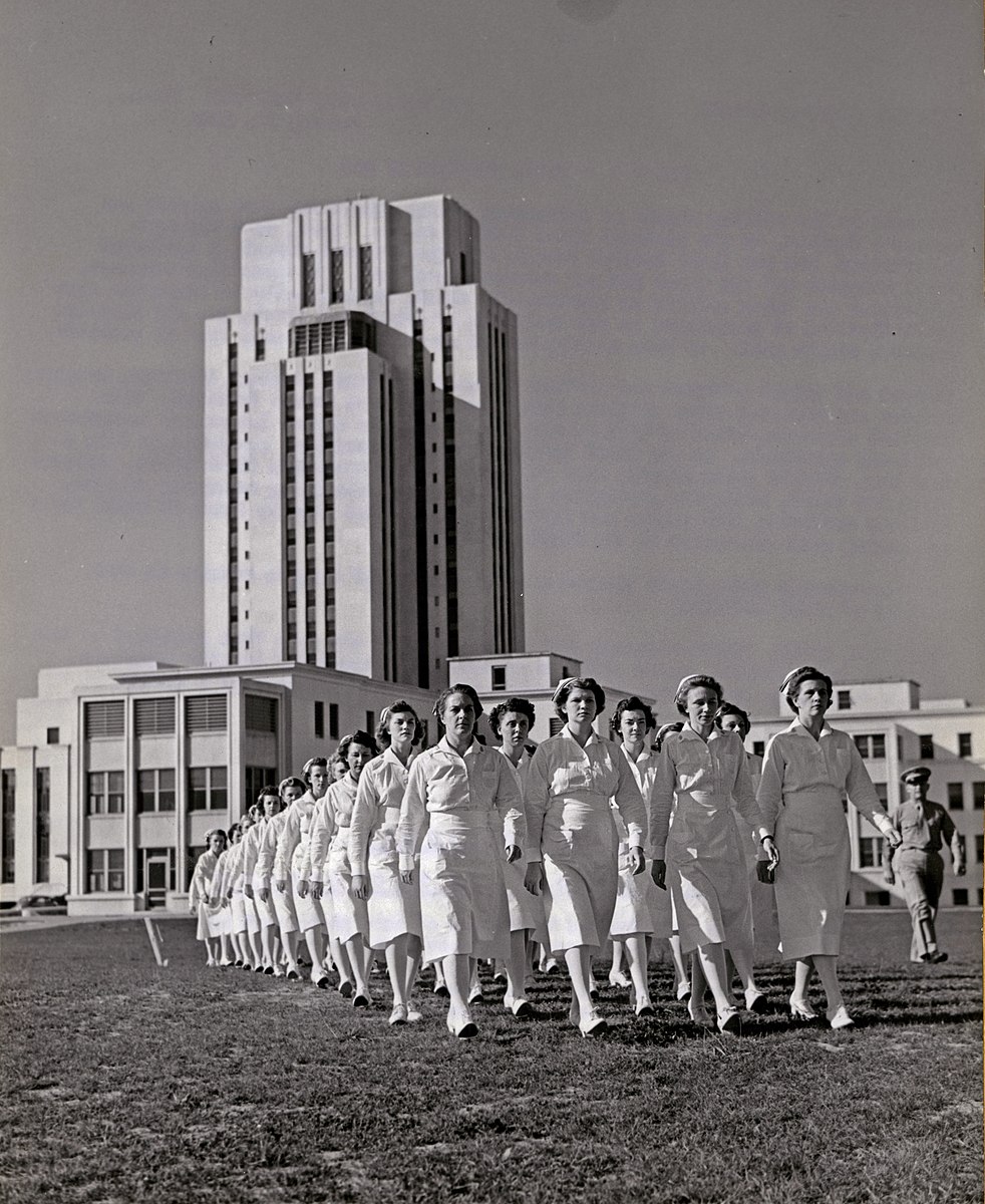 Nurses at the National Naval Medical Center are no exception to the frequent and regular drills conducted during WWII.