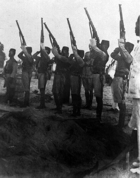 January 9, 1922 – Lagos, Nigeria. Nigerian colonial soldiers fire a rifle salute at the funeral of Colonel Charles Young, the highest‑ranking Black officer in the U.S. Army at the time of his death.
