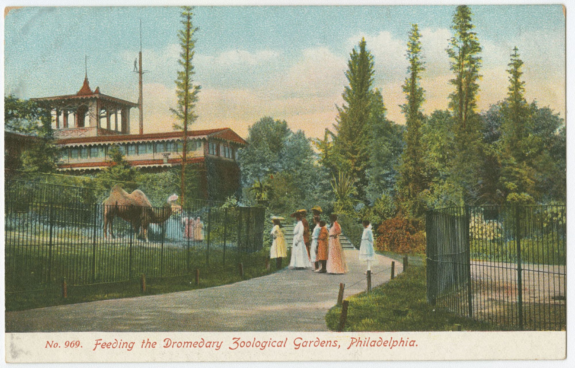 Visitors at the Philadelphia Zoo feeding a camel in 1920.