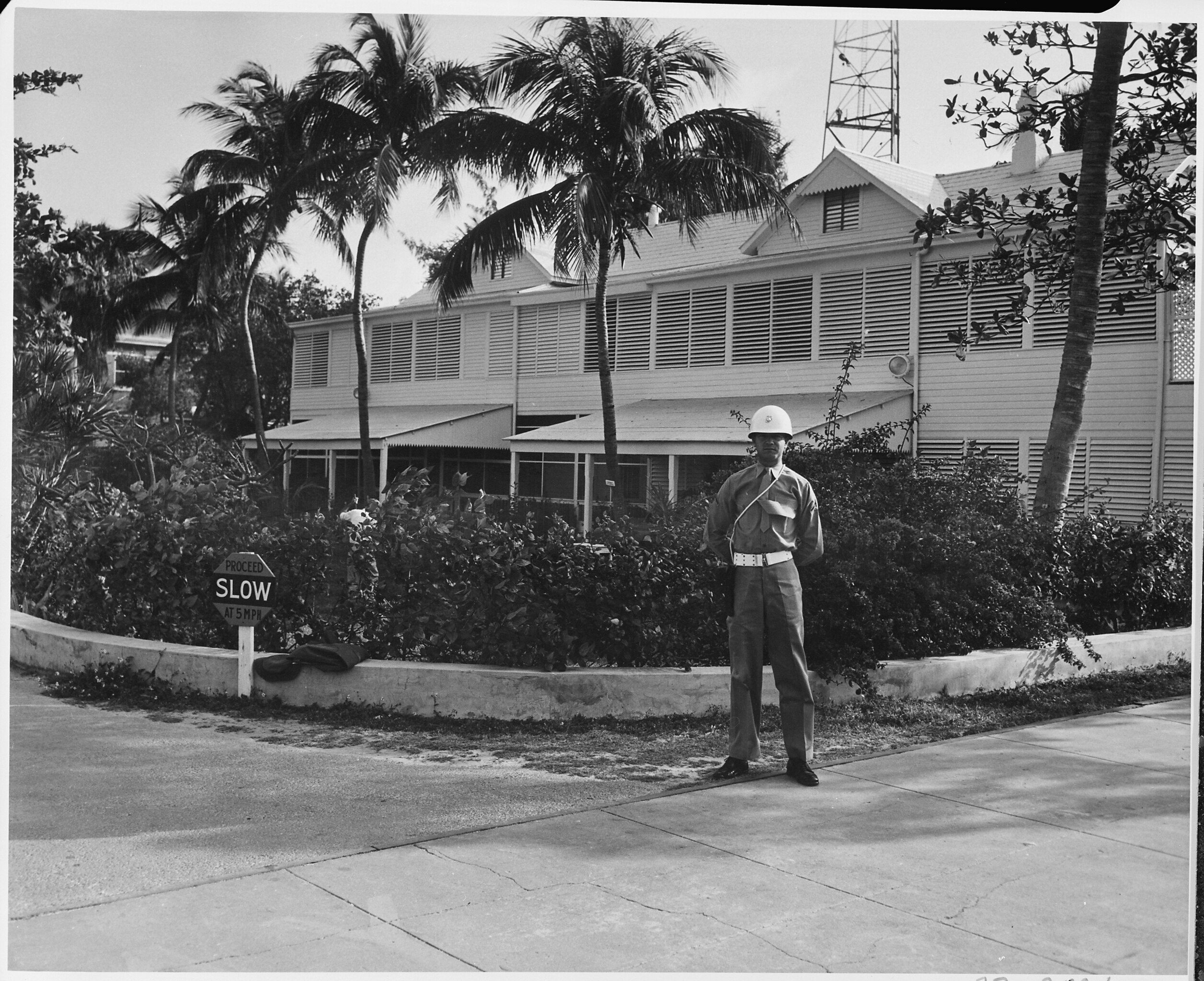 U.S. Marine Corps guard standing outside the “Little White House,” President Truman’s vacation residence at Key West, Florida in 1951.