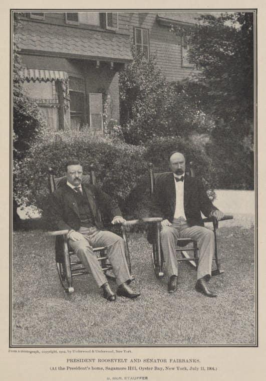 President Roosevelt and Senator Fairbanks. (At the president’s home, Sagamore Hill, Oyster Bay, New York, July 11, 1904)