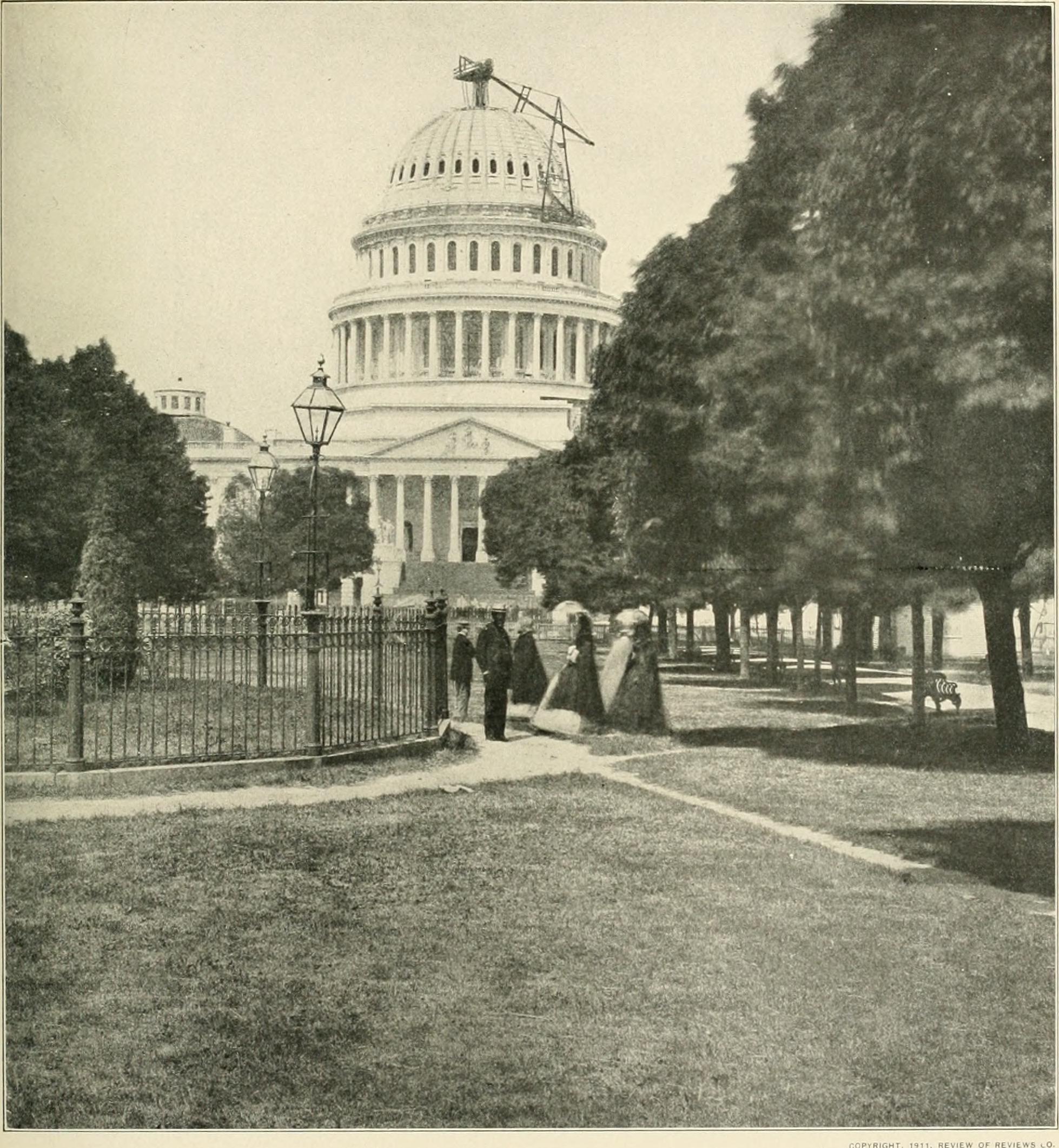 This picture shows the derrick on the dome. It is a view of the east front of the building and was taken on July 11, 1863.