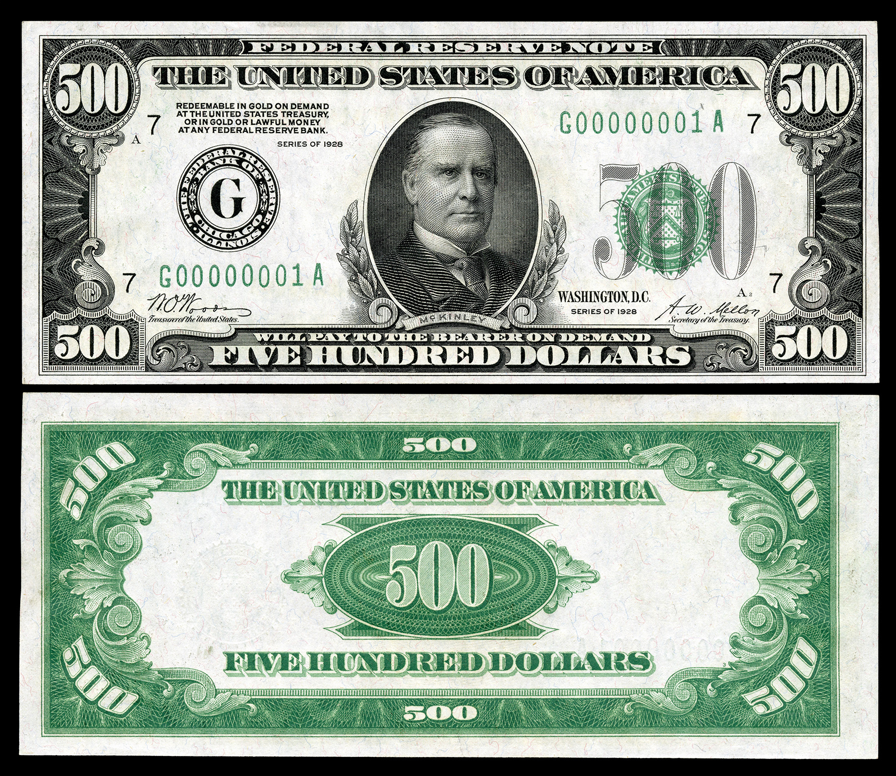On July 14, 1969, The Federal Reserve officially discontinued high-denomination currency such as the $500, $1,000, $5,000 and $10,000 notes. Some of these legal tender bills may still remain in circulation and are prized by collectors.