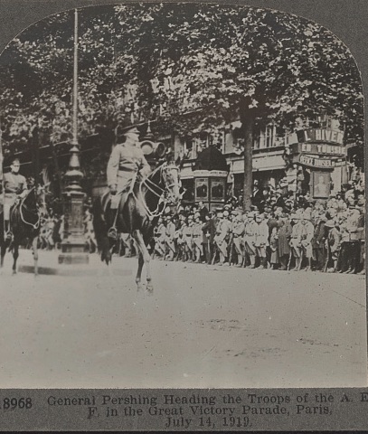 General Pershing heading the troops of the A. E. F. in the great Victory Parade, Paris, July 14, 1919