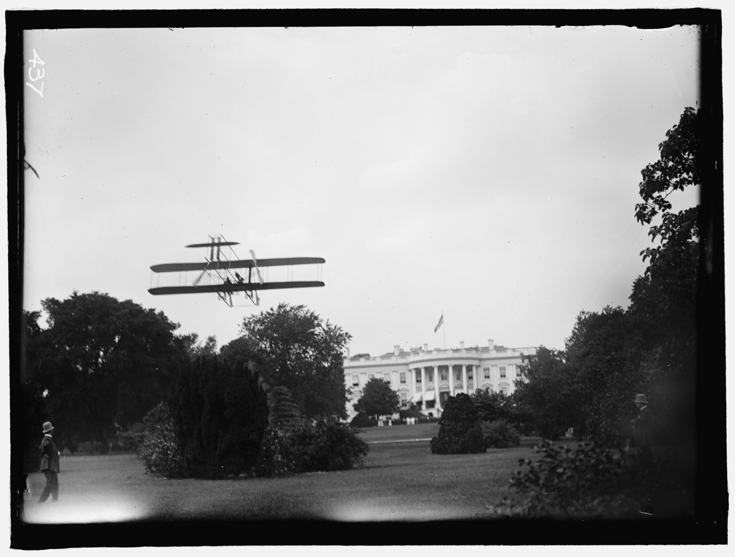 On July 14, 1911 Harry Nelson Atwood completed a 14-day, 576-mile flight from Boston to Washington, DC by landing on the South Lawn of the White House. Here he’s shown taking off, having received a gold medal from the Aero Club of Washington, presented to him by President Taft.