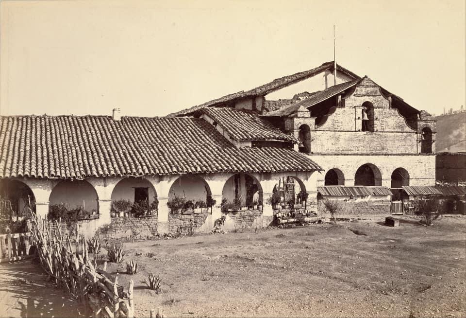 Photo of Mission San Antonio de Padua more than 100 years later c. 1880 via Wikimedia Commons, public domain