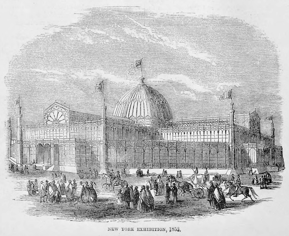 A drawing of The New York Crystal Palace at the Exhibition of the Industry of All Nations which opened on July 14, 1853 in New York City.