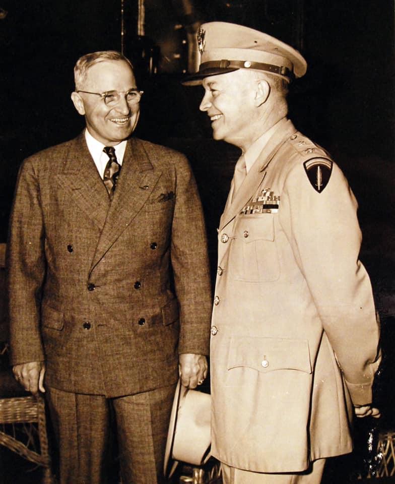 President Harry S. Truman and General Dwight D. Eisenhower aboard the USS Augusta en route to the Potsdam Conference in July of 1945.