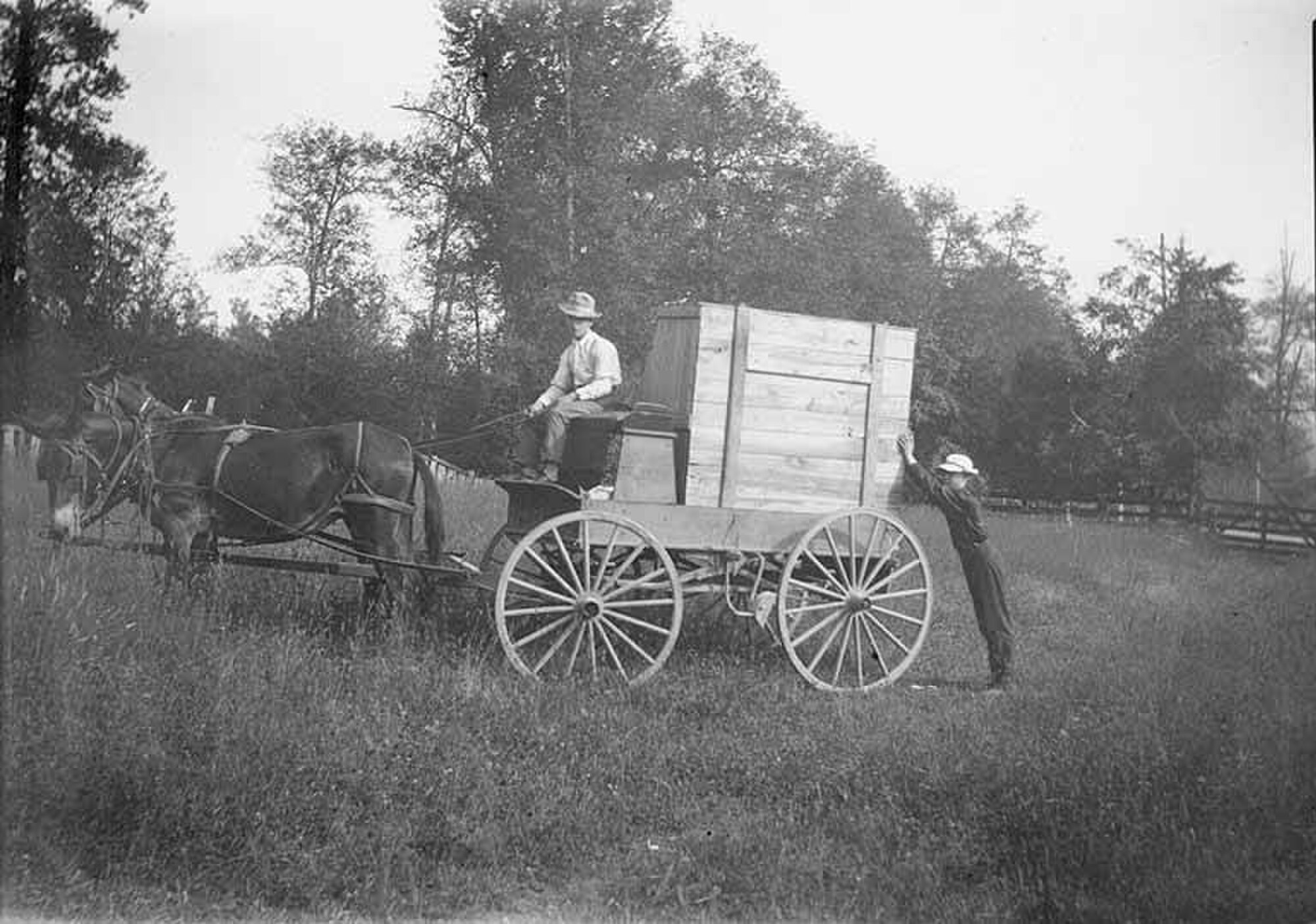 Delivering a piano on a wagon near Fall City, Washington State on July 17, 1907