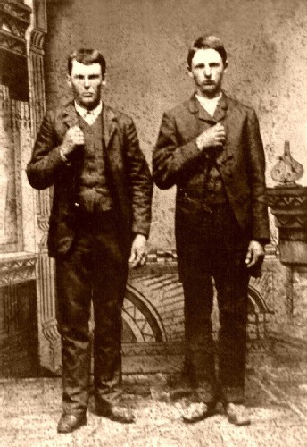 Image of Jesse James and his brother Frank in 1872 via Wikimedia Commons, public domain