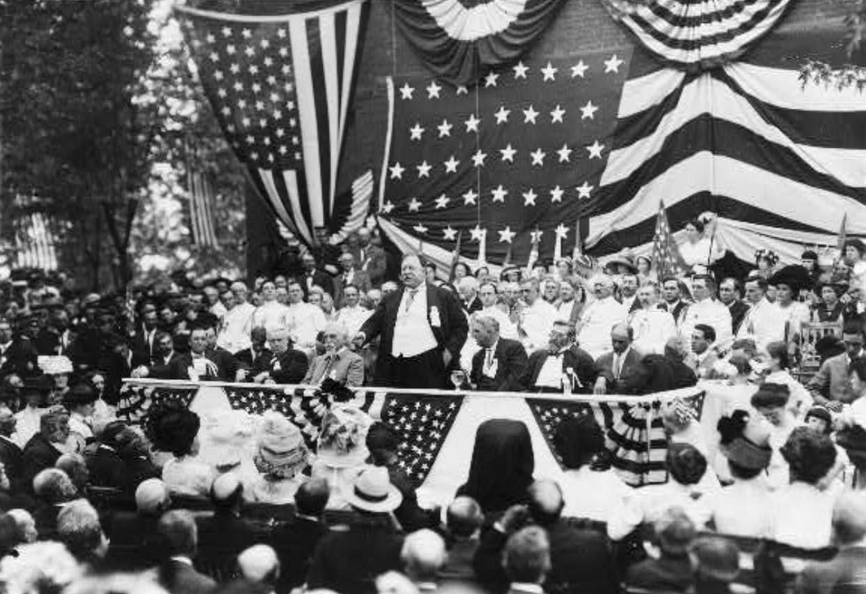President Taft speaks to the crowd at Bull Run in Virginia on July 21, 1911 during the 50th anniversary of the battle.