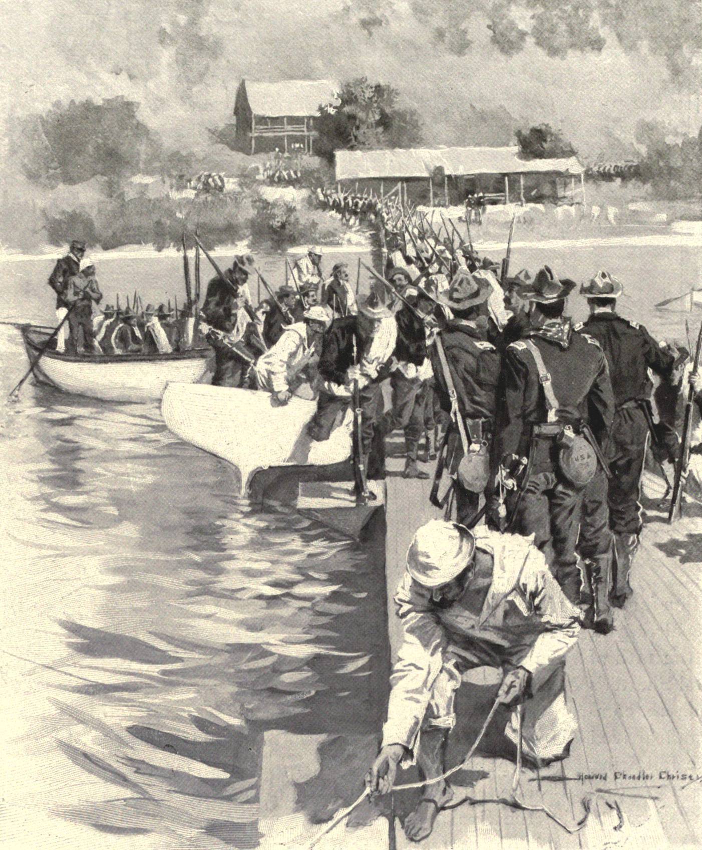 An illustration showing the landing of nearly 3,000 American troops at Guanica, Puerto Rico on July 25, 1898.