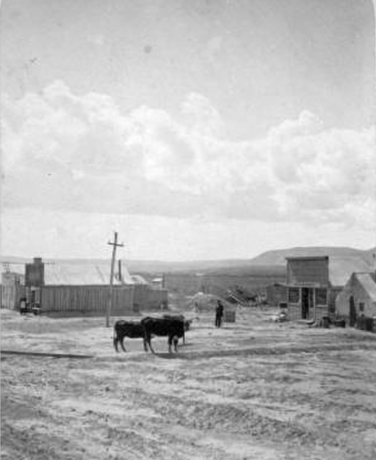 Scene of the Union Pacific Railroad depot at Green River, Wyoming c. 1871