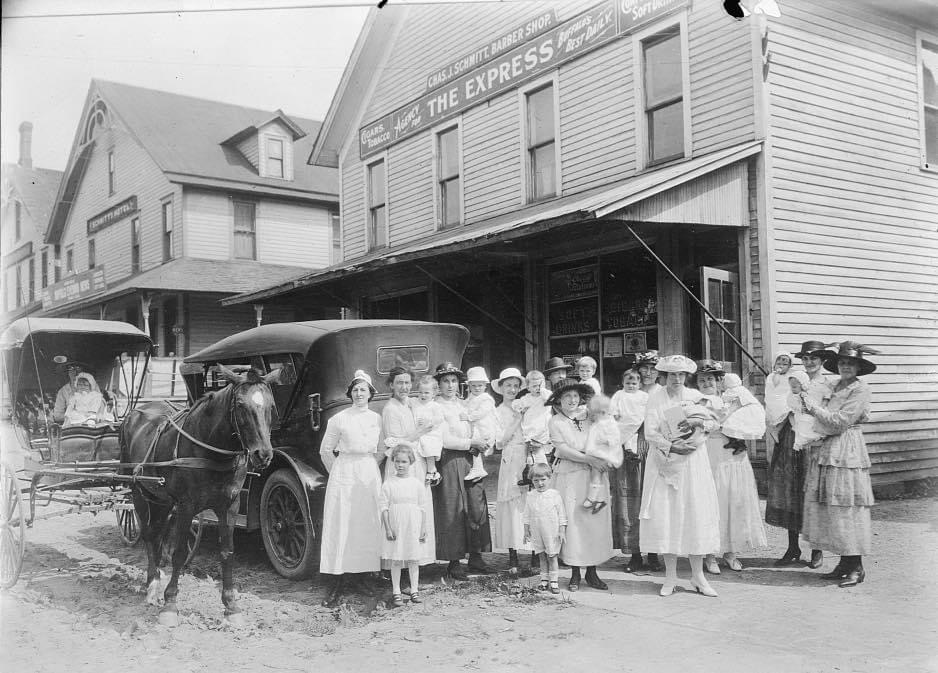 “Boston Baby Clinic held July 27, 1920, was the first of series of clinics conducted by the Buffalo Chapter in its branches in Erie County, N.Y. A group outside the clinic”