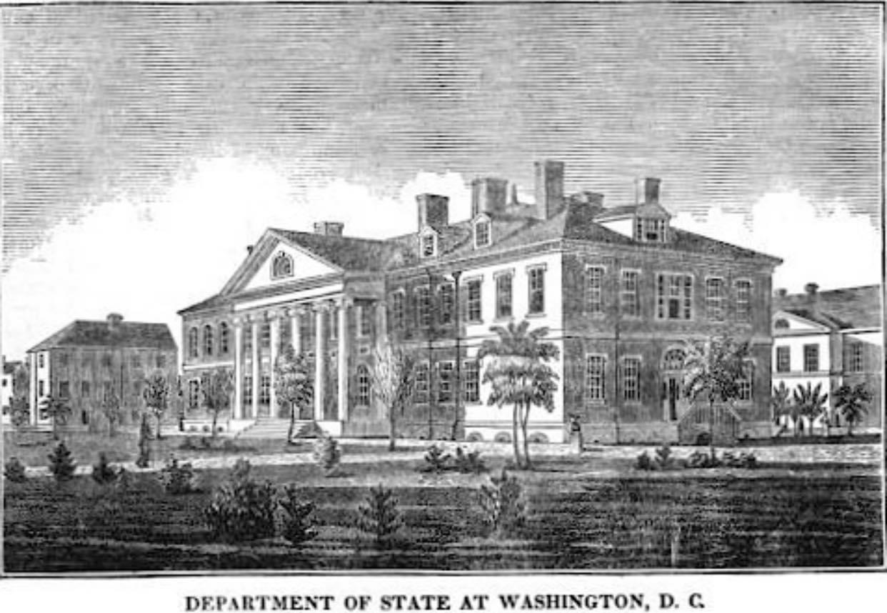 Image: U.S. State Department building in Washington D.C. in 1835 via Wikimedia Commons, public domain