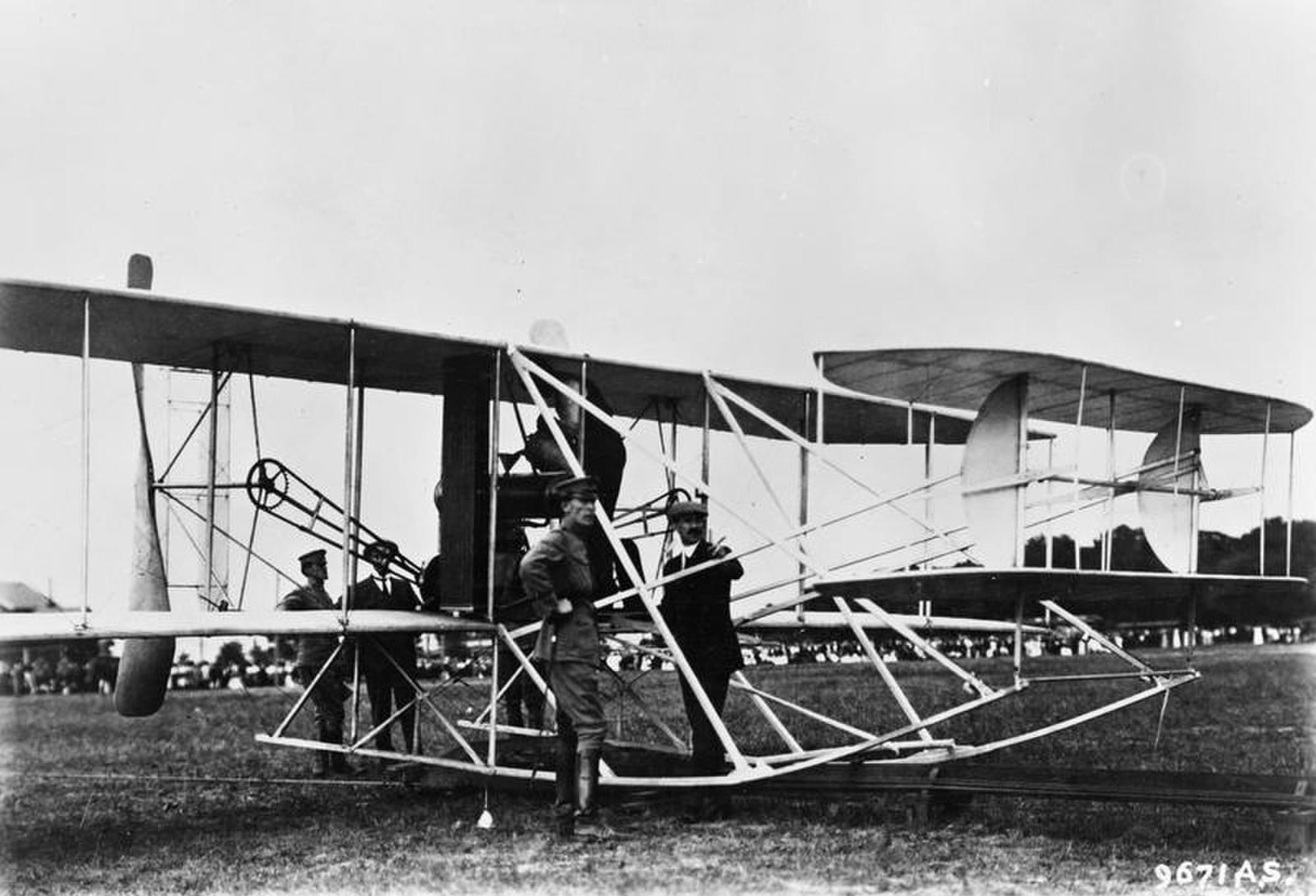 Image: Wright Military Flyer in 1909, Lt. Benjamin D. Faulis; Wilbur Wright, Lt. Frank P. Lahm and Orville Wright.