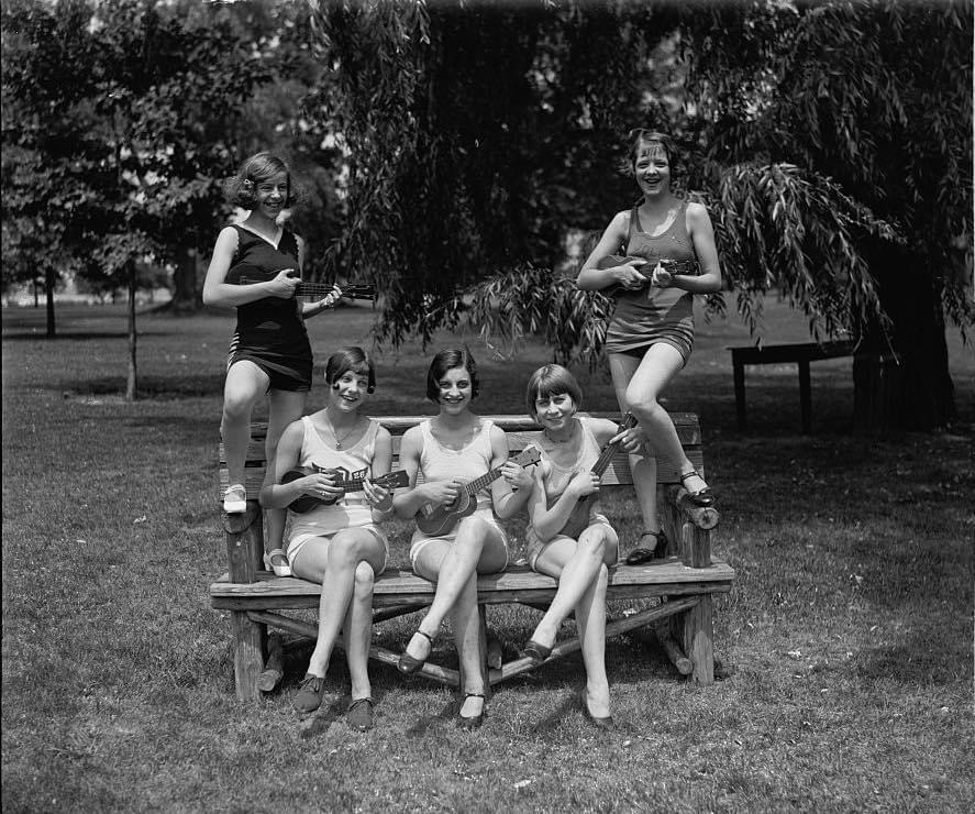 “Women in bathing suits with ukuleles”