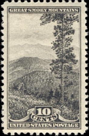 10 cent stamp featuring the Great Smoky Mountains from 1934
