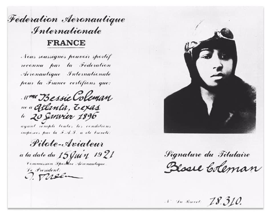 On June 15, 1921, Bessie Coleman became the first African American woman and first Native American to receive a pilot’s license.