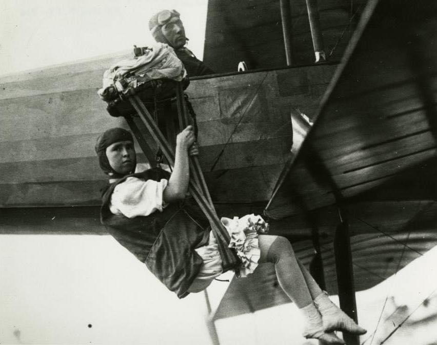 Image: Georgia “Tiny” Broadwick preparing to make another parachute jump in August 1913