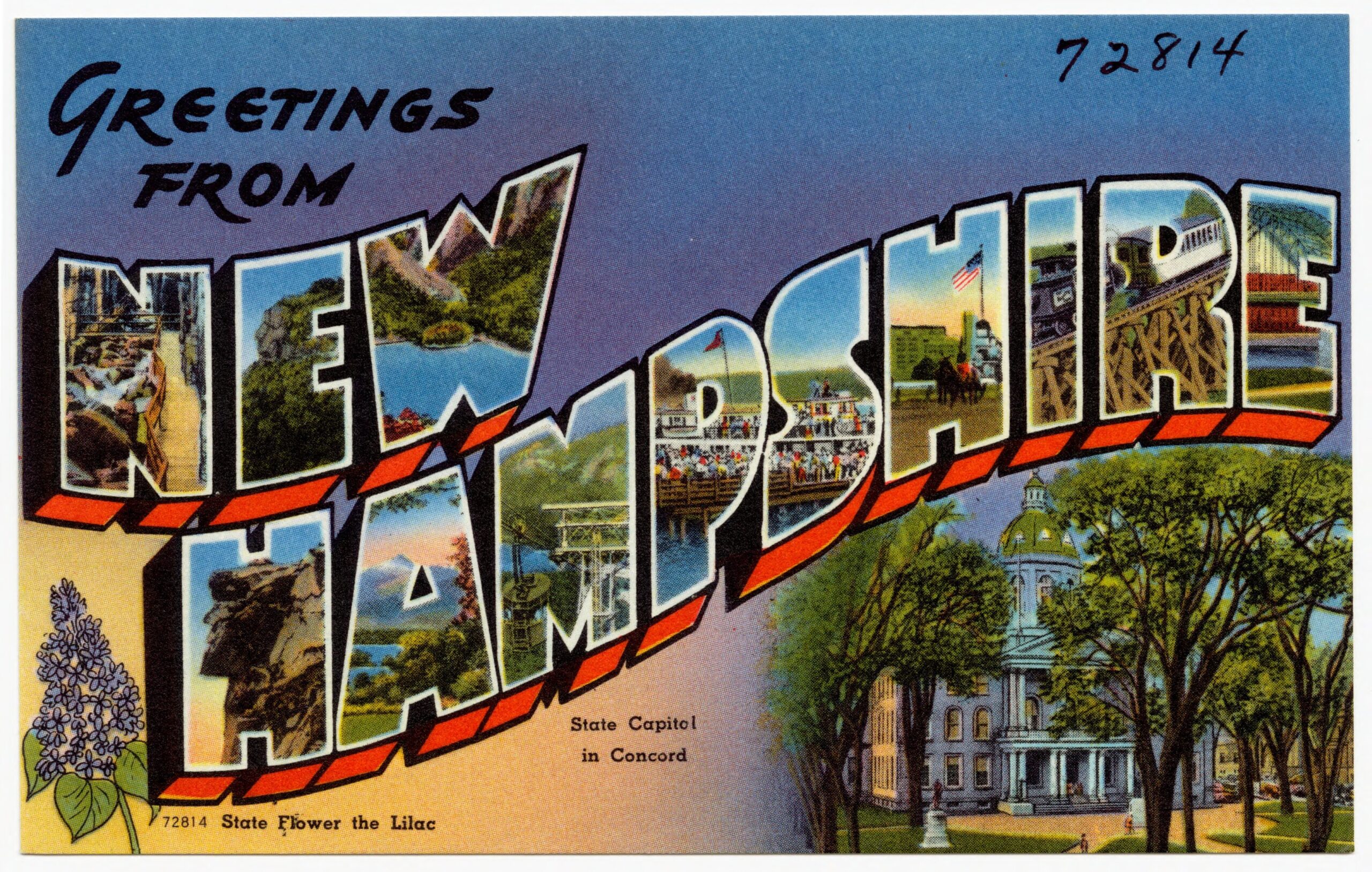Image of a New Hampshire postcard c. 1930-1945 via Wikimedia Commons, public domain