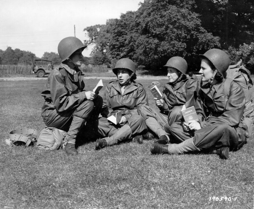 WACs (Women’s Army Corps) studying French. Their instructor, also a WAC, previously lived in a boarding school in France.