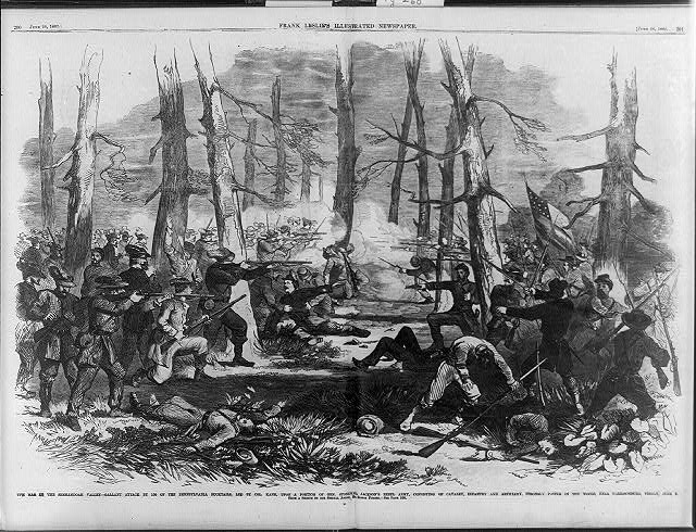 Attack of the Pennsylvania Bucktails, led by Col. Kane, upon Stonewall Jackson’s army in the woods near Harrisonburg, Va.