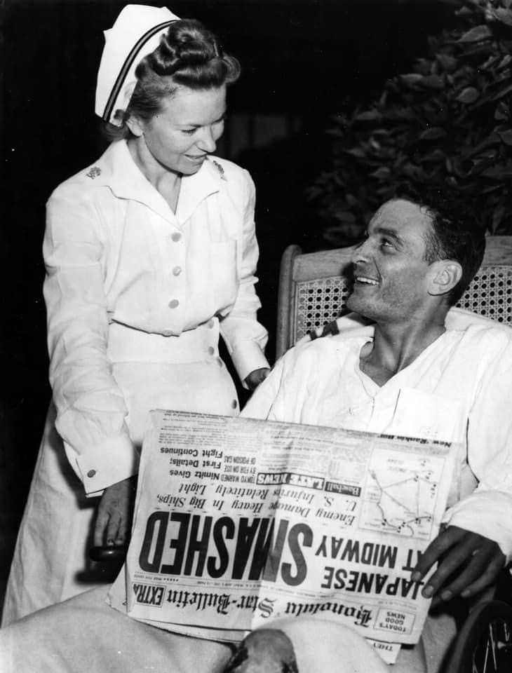 Image: U.S. Navy pilot George H. Gay recovering after The Battle of Midway at Pearl Harbor Naval Hospital. Gay was the sole survivor of Torpedo Squadron 8. Photo is believed to be from June 7, 1942