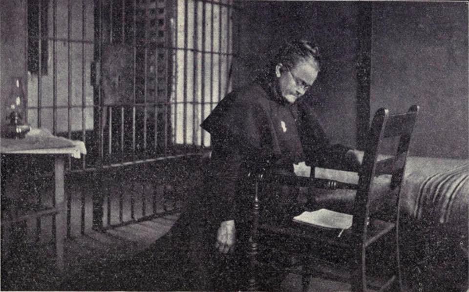 Carrie A. Nation in a jail cell c. 1901