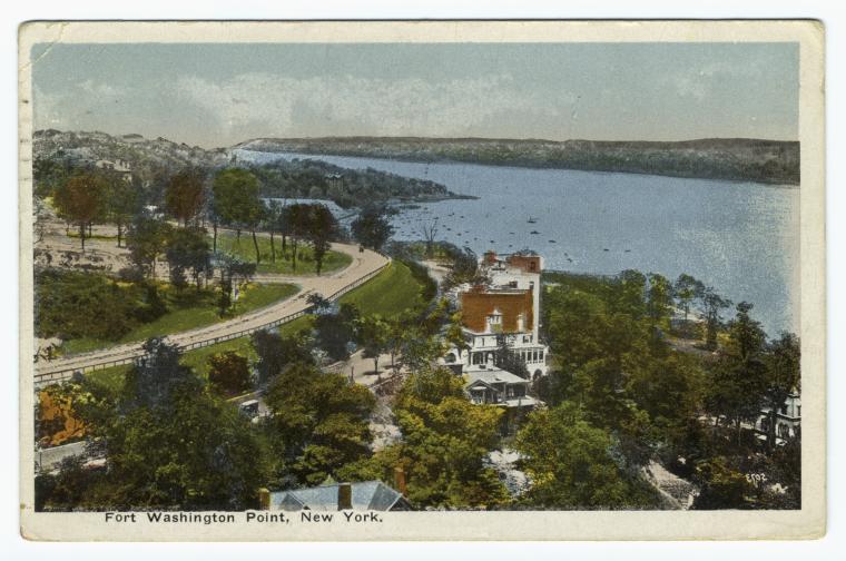 Fort Washington Point, captured here in 1918, marks the exact Manhattan shoreline where the bridge would rise just a decade later. Before construction began in 1927, this was a quiet bend in the Hudson—parkland, footpaths, and steep bluffs facing the Palisades—seen here in its final years before the riverfront was transformed forever.