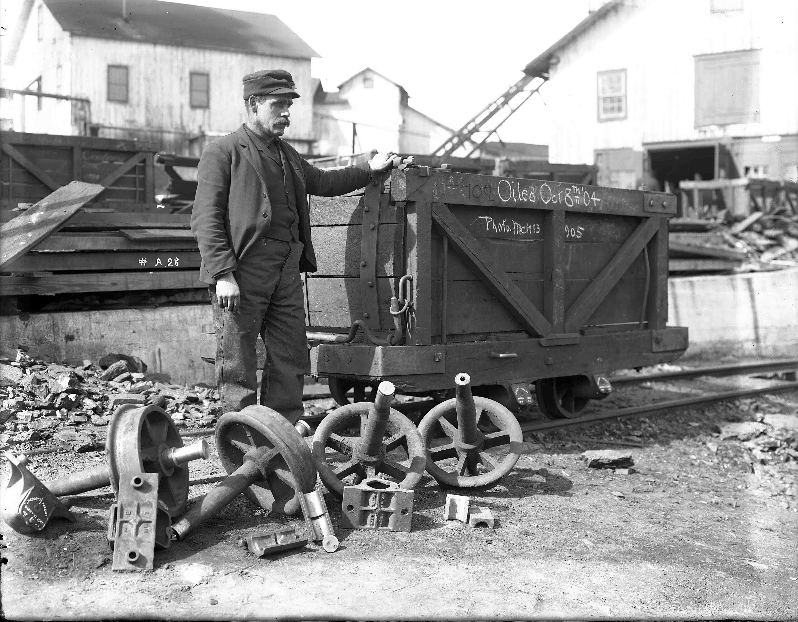 Mine car with replaceable wheel and axle sets in Northeast Pennsylvania