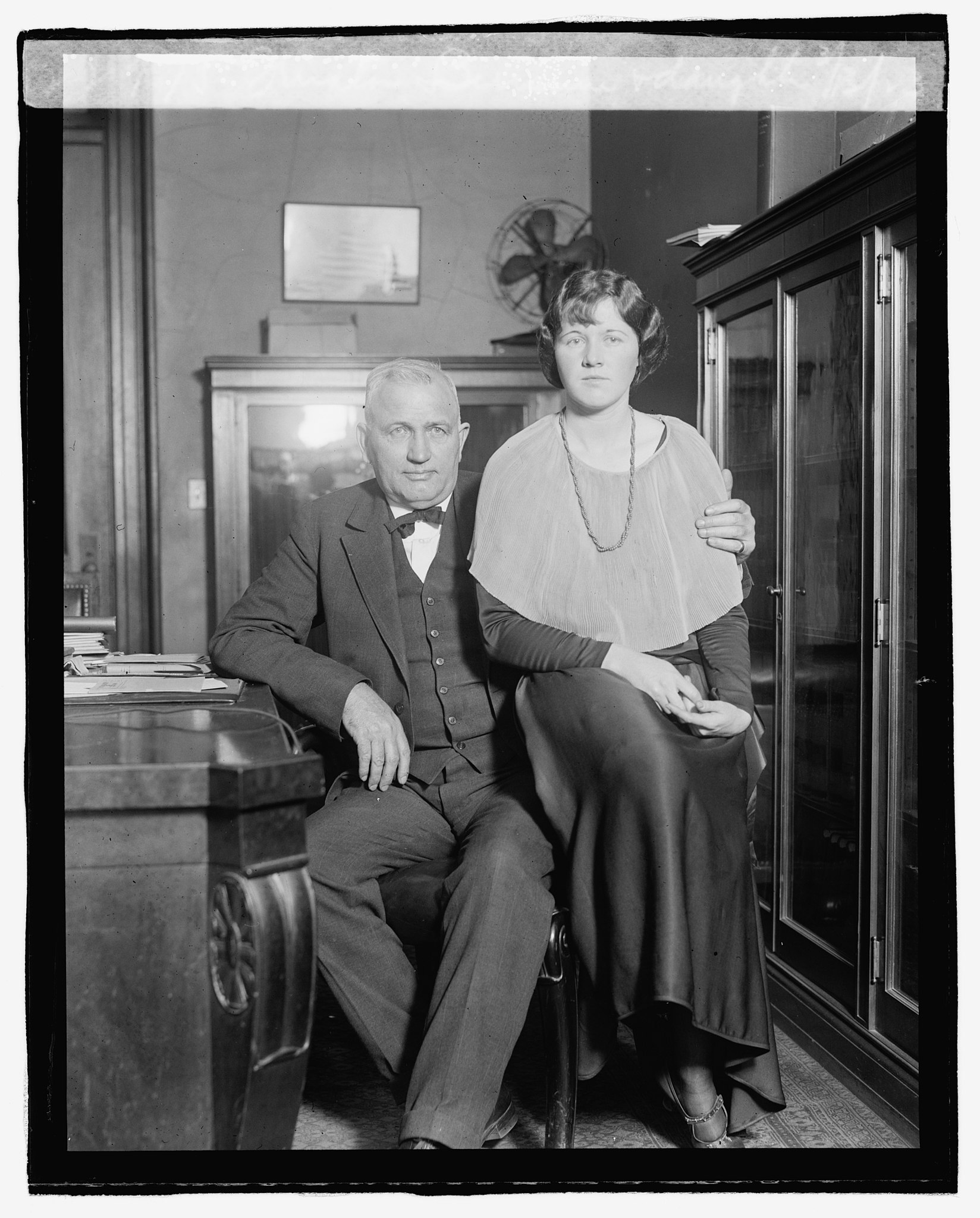 A photograph of U.S. Senator Holm Bursum and his daughter that was taken on March 13, 1923.