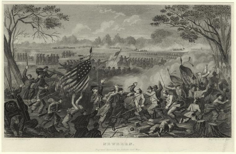 Image of The Battle of New Bern, North Carolina on March 14, 1862 from NYPL Digital Collections, no known restrictions