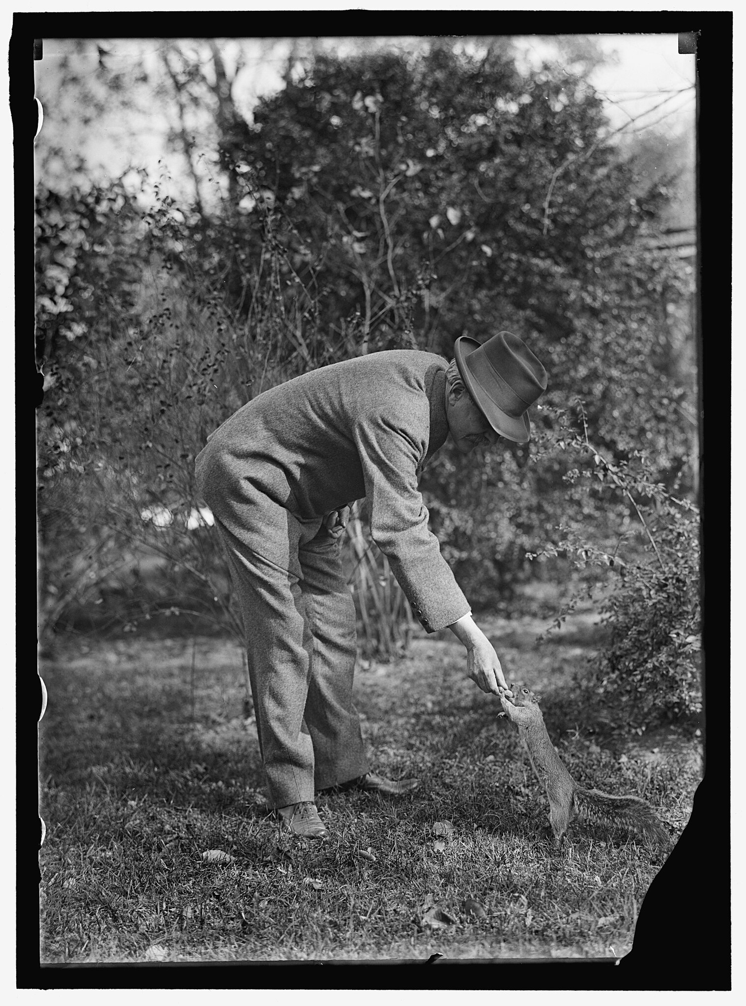 28th Vice President of The United States Thomas Riley Marshall feeding a squirrel.