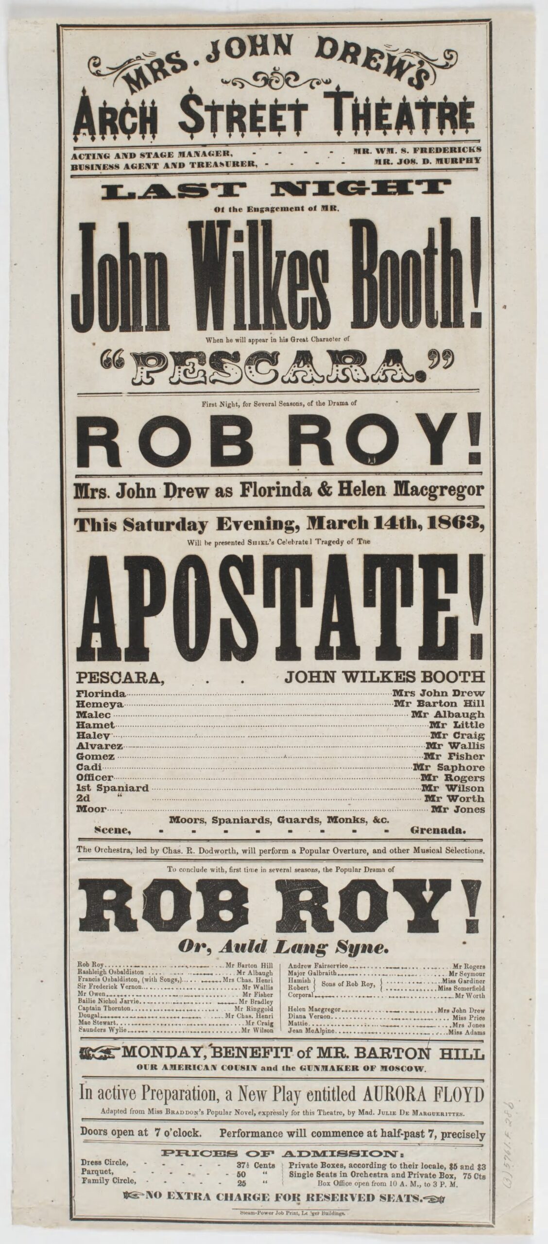 at the Arch Street Theater in Philadelphia on March 14, 1863.