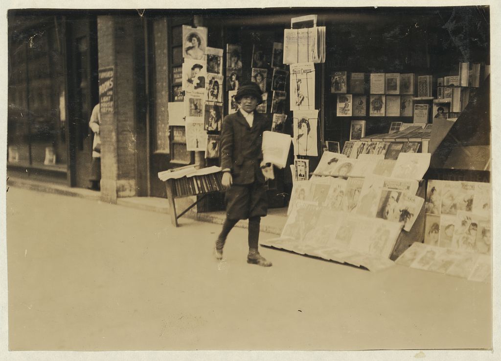 8-year-old truant newsboy, who didn’t know his name nor where he lived. Said he had just had the measles. Photographed during school hours. Location: Oklahoma City, Oklahoma