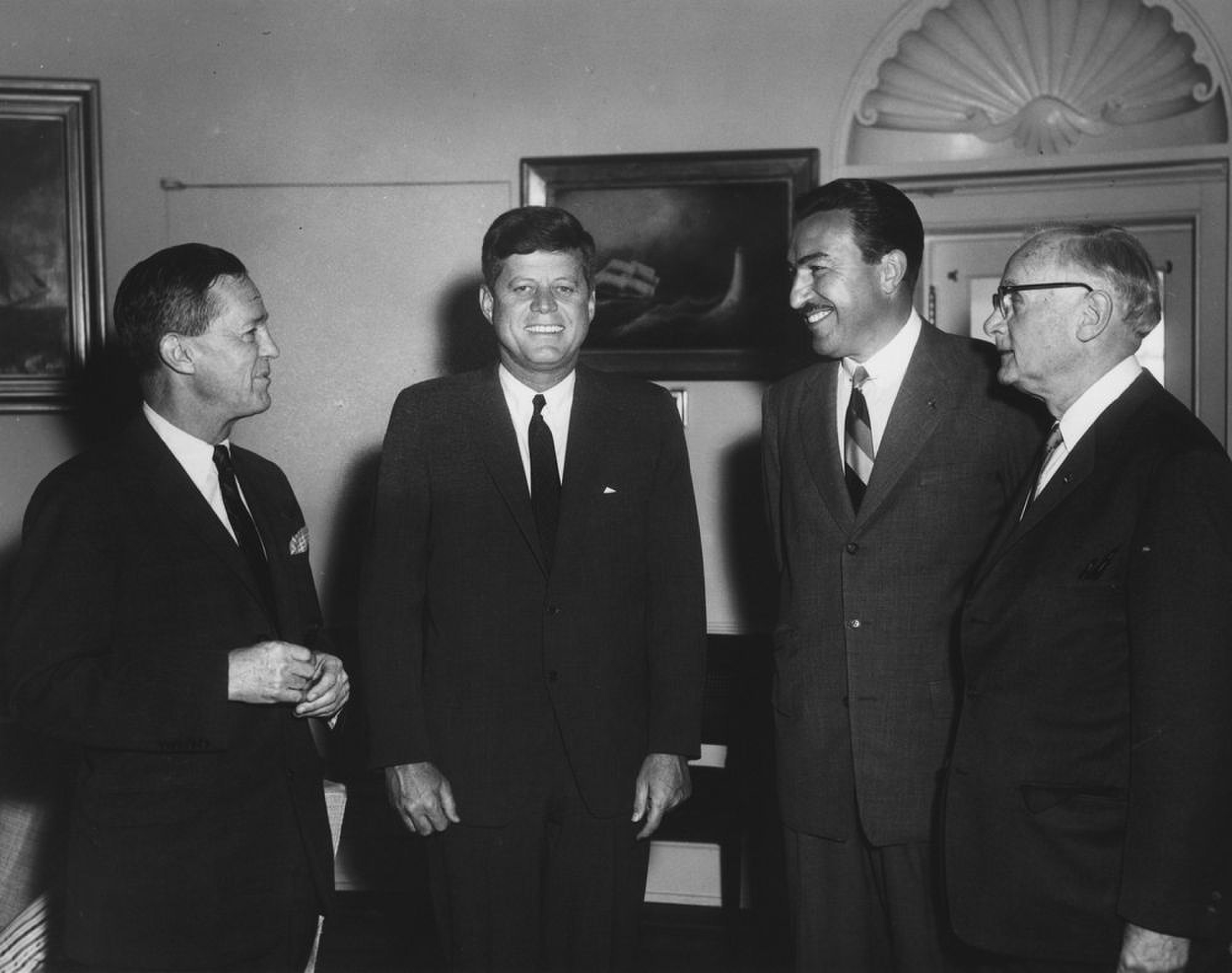 President Kennedy with members of U.S. Congress on March 15, 1962 which was the day he signed the Manpower Development and Training Act.