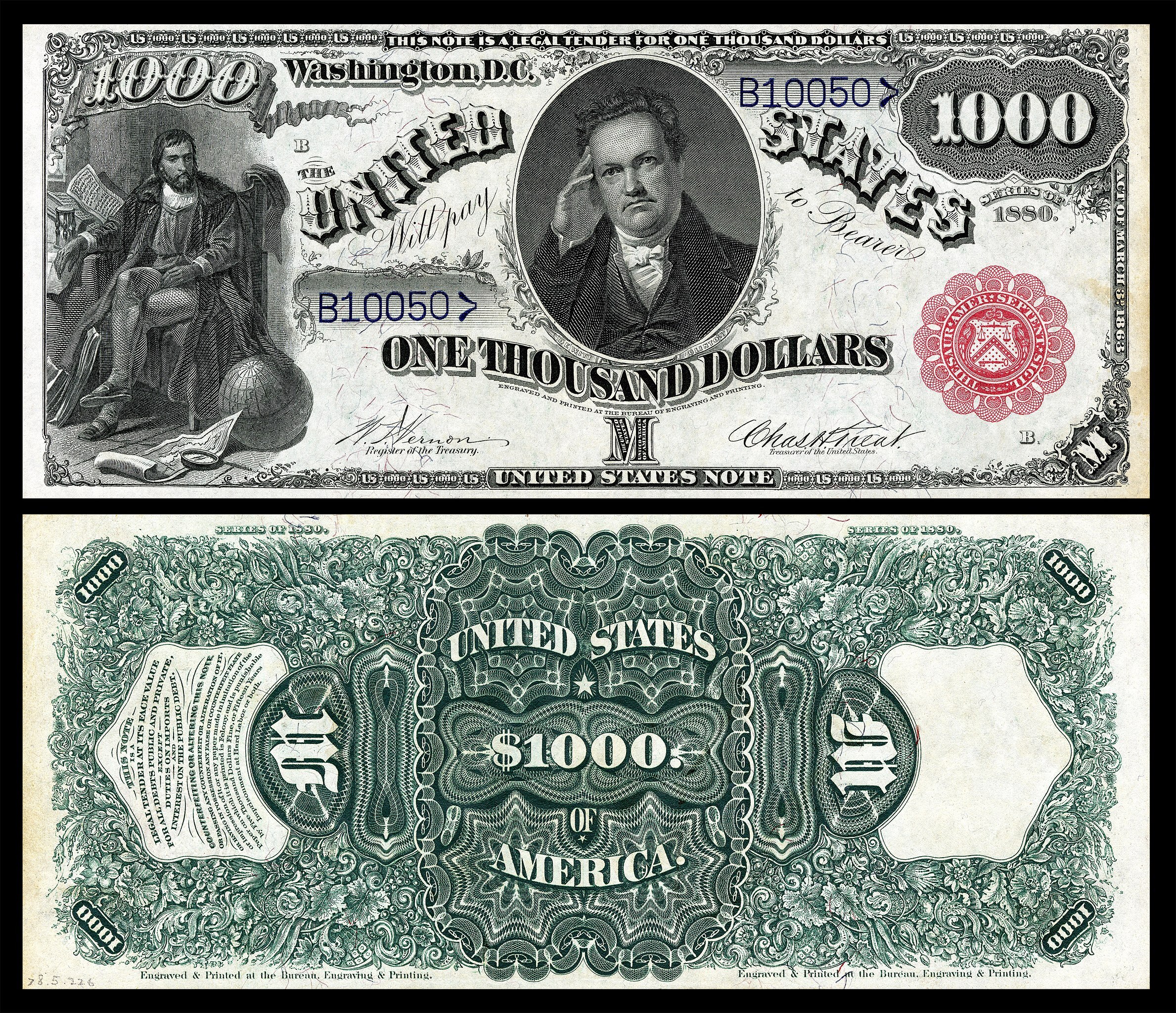 Between 1869-1880 his image was depicted on the $1,000 Legal Tender note.