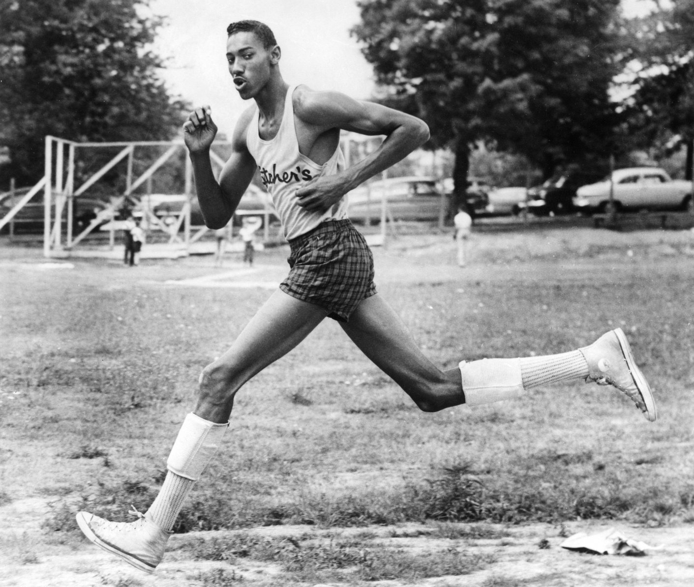 Wilt Chamberlain Pictured at age 17 when he was a senior at Philadelphia Overbrook High School when he was an athletic prospect in 1954 via Alamy