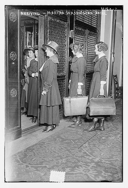 Image of women arriving at the hotel c. 1915-1920 via LOC, no known restrictions