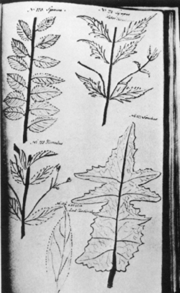 Image of leaves from plants in New York drawn by Jane via Wikimedia Commons