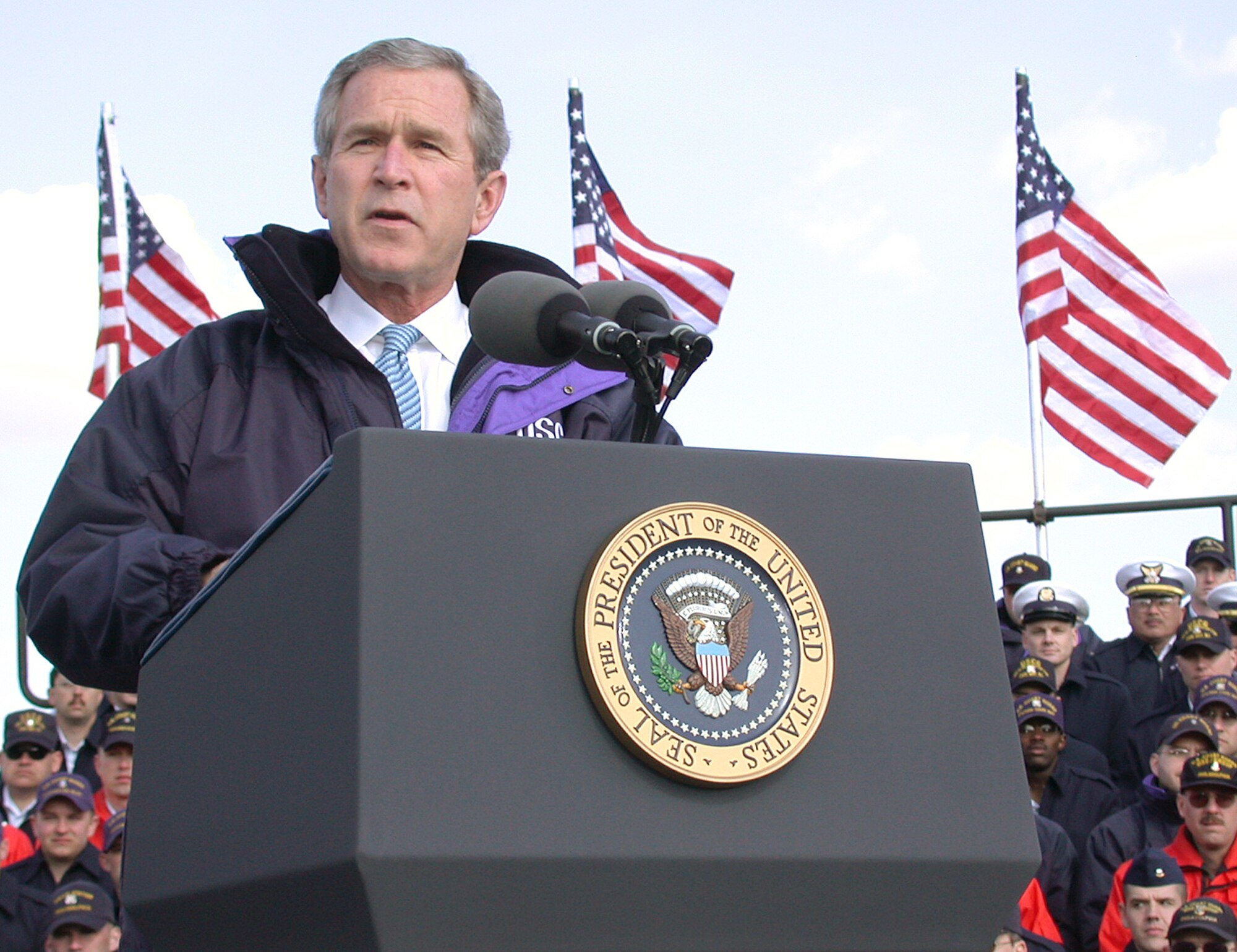 President Bush speaking to the United States Coast Guard in Philadelphia on March 31, 2003.